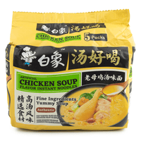 Baixiang instant chicken flavored noodle soup is made with only the highest quality wheat flour for noodles, with a slow-boiled chicken bone broth for a fragrant and mellow taste. Try it today! Ingredients list:Bread: wheat flour, refined palm oil, tapioca starch, acetate starch, gluten (wheat gluten protein), edible salt, sodium hexametaphosphate, sodium tripolyphosphate.Soup bag (average 25g): refined palm oil, edible salt, water, edible flavors (star anise oil, chili oleoresin, raw oleoresin, black pepper oil, soybean oil), yeast extract, radish powder, glucose, red Onion, monosodium glutamate, curry powder, cumin powder, cumin powder, cardamom powder, grass fruit powder, star anise powder, cinnamon powder, eugenol, pepper powder, angelica powder, garlic, black pepper powder, white pepper powder, ginger, yellow Onion powder, nutmeg powder, hydrolyzed vegetable protein powder (acid hydrolyzed vegetable egg day seasoning liquid (soybean, wheat, water), maltodextrin, edible salt, monosodium glutamate), chili powder, white sugar, soy sauce (water, soybean, edible Salt, wheat, caramel color, sodium glutamate, white sugar, potassium sorbate, disodium 5-guanylate, disodium 5-inosinate, capsicum red.Vegetable Pack: Dehydrated Cabbage, Dehydrated Carrot, Dehydrated Coriander, Dehydrated Onion. Pickled cabbage bag (average 12 grams): pickled vegetables (shepherd's purse, edible salt), pickled ginger, rapeseed oil, edible salt, chili powder, monosodium glutamate, lactic acid, disodium 5-guanylate, disodium 5-inosinate.Storage method: Store in a cool, dry place away from direct sunlight.Baixiang Instant Noodles, Chicken Soup Flavor 5ct